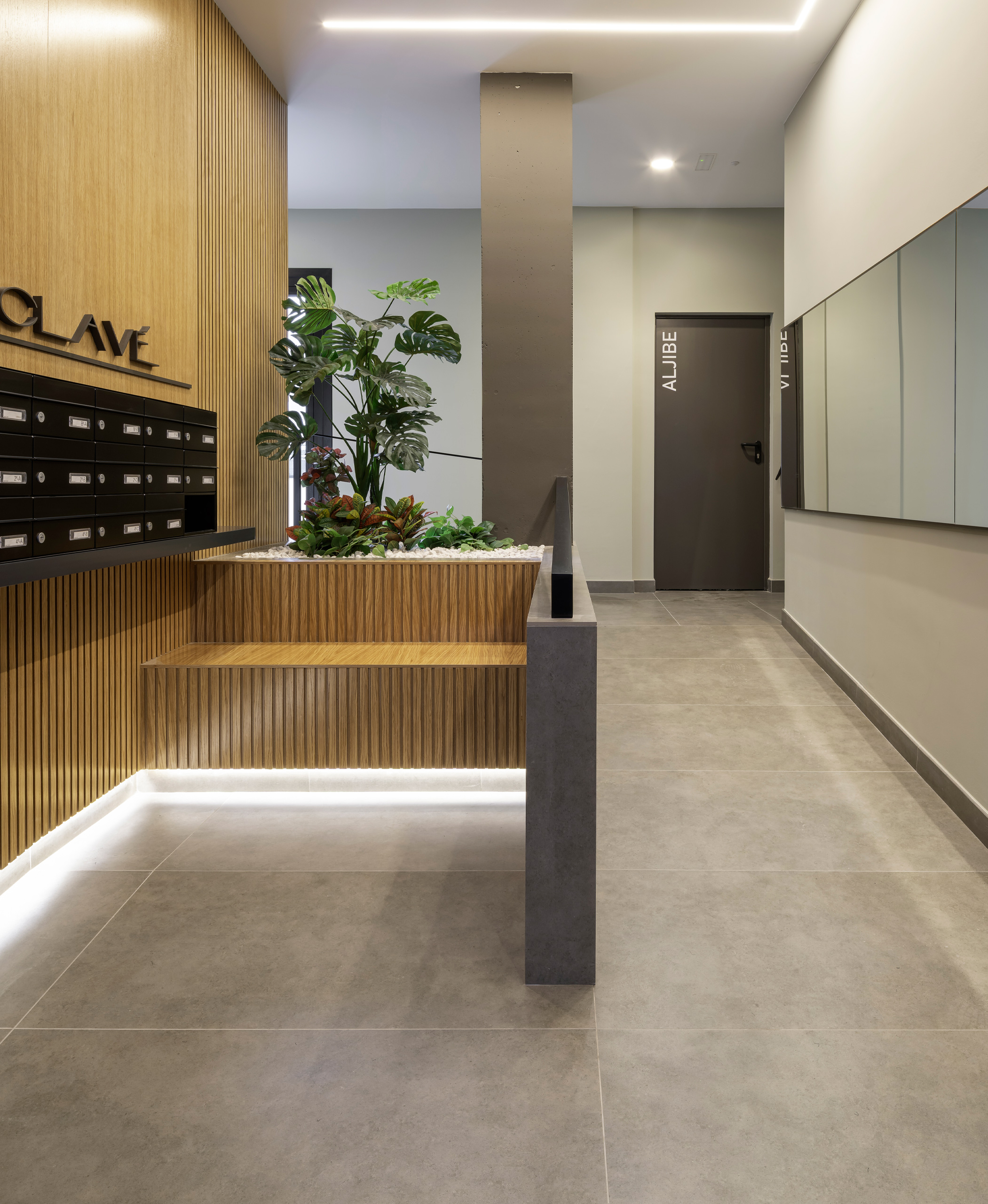 Las viviendas cuentan con: cocinas equipadas con electrodomésticos de la marca BOSCH, baños con mueble de lavabo y mamparas, armarios empotrados divididos interiormente en dormitorios y entrada de la vivienda, carpintería interior en color blanco, pavimentos de gres en baños, lavandería y cocina y suelo laminado en salón–comedor y dormitorios. La instalación de producción de agua caliente y calefacción será del tipo individual a base de caldera de gas natural estancas y de condensación. El edificio contará con una instalación de aerotermia, para la contribución solar a la producción de agua caliente sanitaria en las viviendas. Las viviendas disponen de un sistema de calefacción por suelo radiante.