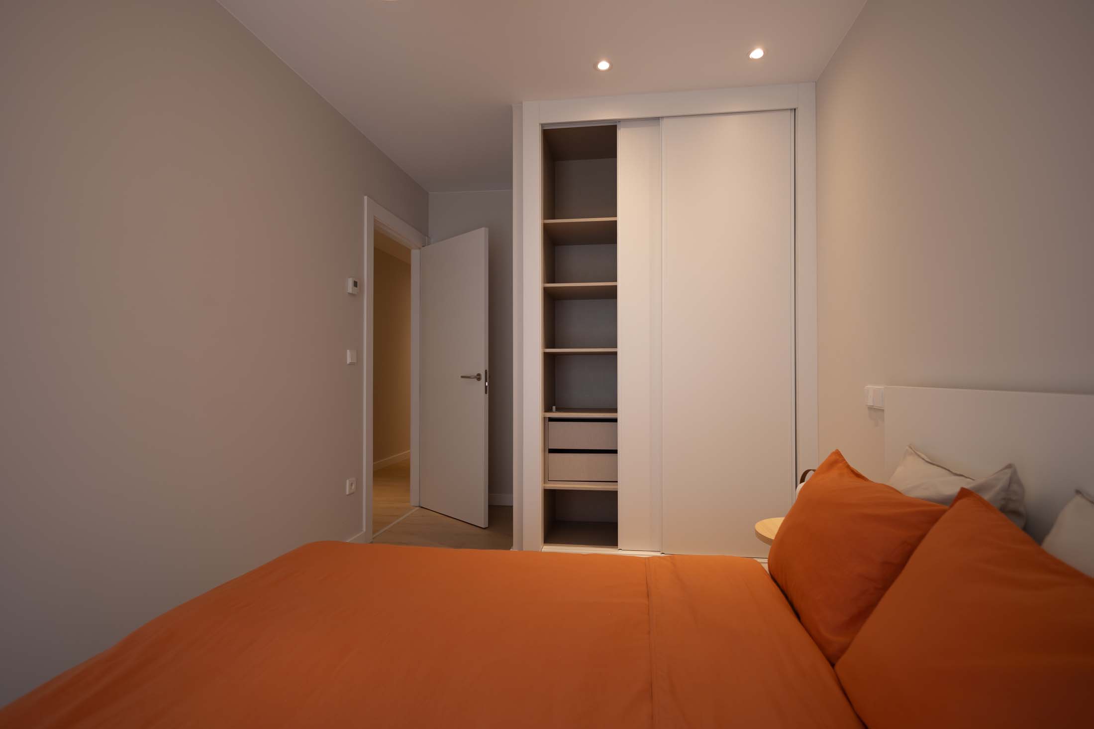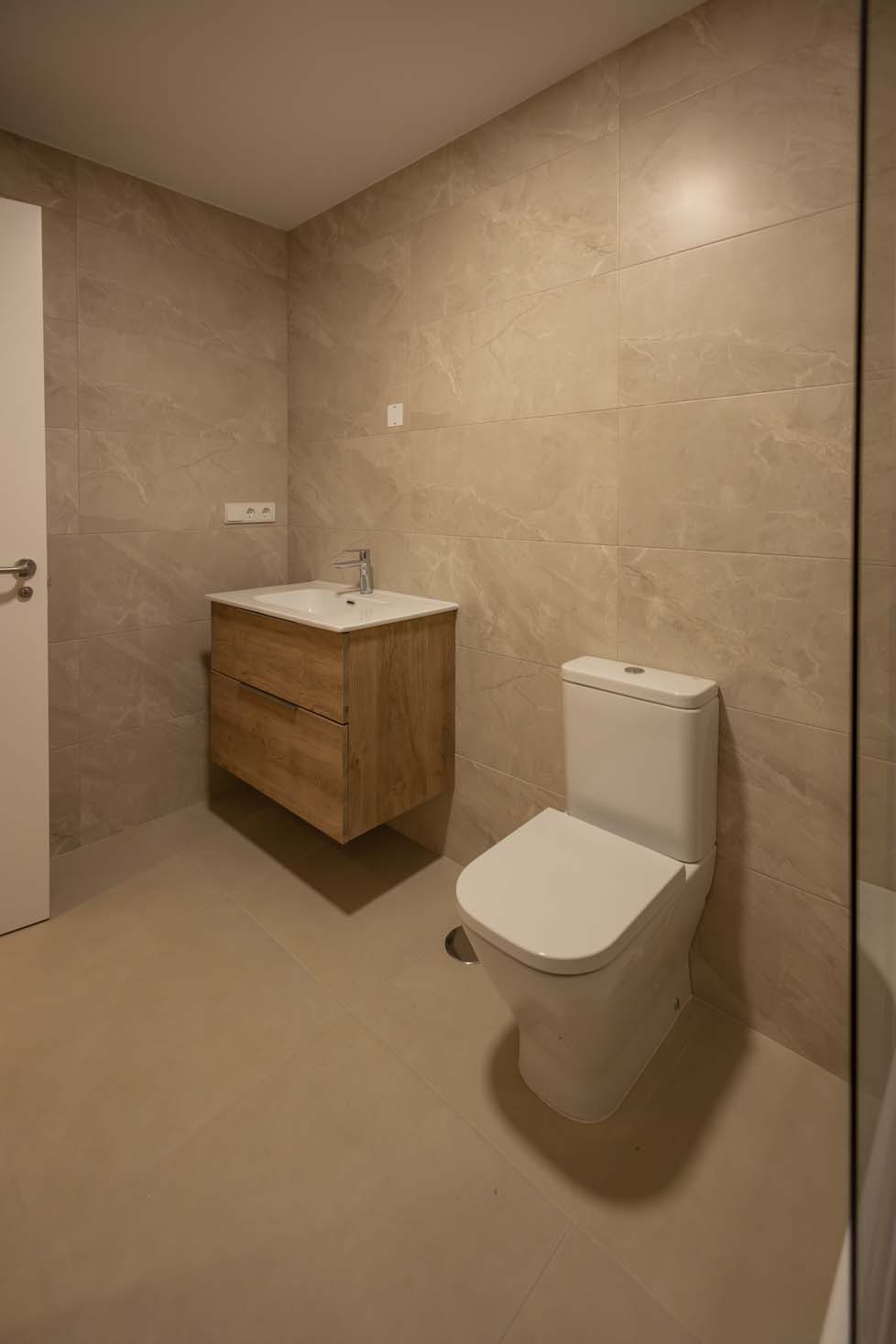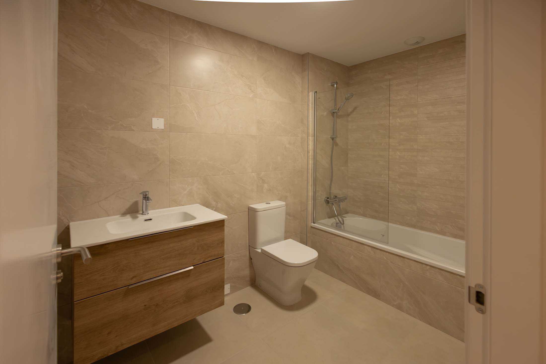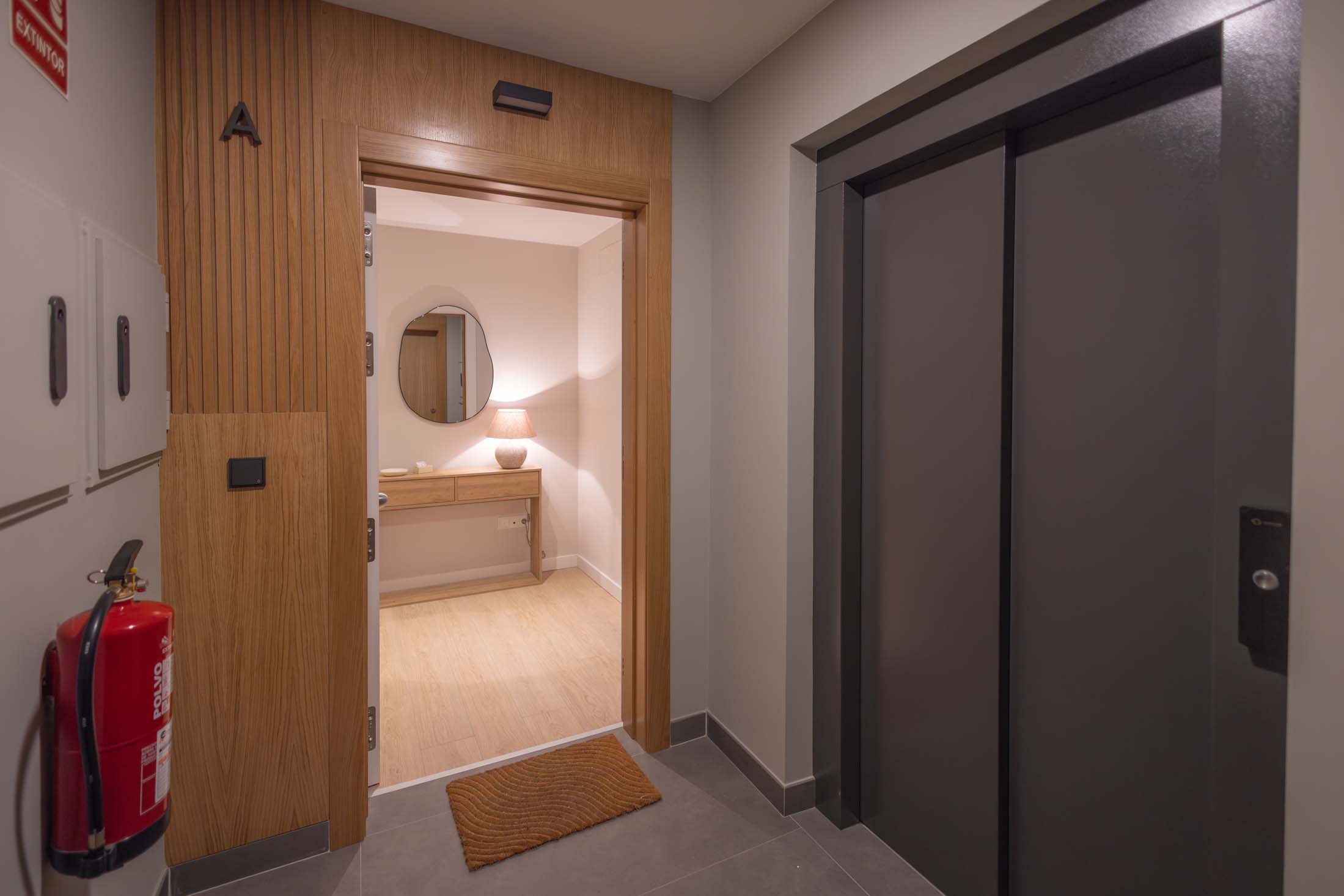 Las viviendas cuentan con: cocinas equipadas con electrodomésticos de la marca BOSCH, baños con mueble de lavabo y mamparas, armarios empotrados divididos interiormente en dormitorios y entrada de la vivienda, carpintería interior en color blanco, pavimentos de gres en baños, lavandería y cocina y suelo laminado en salón–comedor y dormitorios. La instalación de producción de agua caliente y calefacción será del tipo individual a base de caldera de gas natural estancas y de condensación. El edificio contará con una instalación de aerotermia, para la contribución solar a la producción de agua caliente sanitaria en las viviendas. Las viviendas disponen de un sistema de calefacción por suelo radiante.