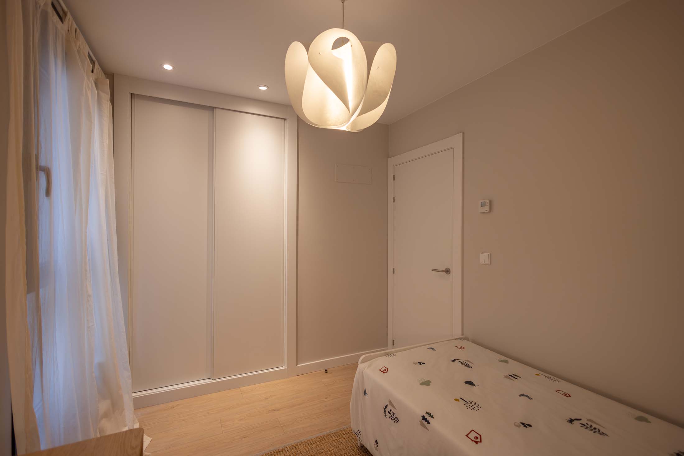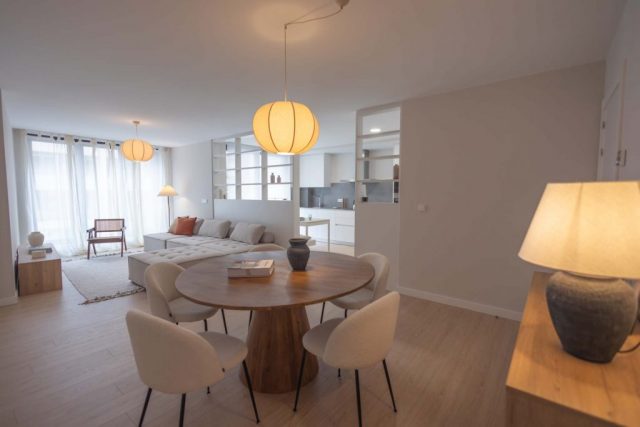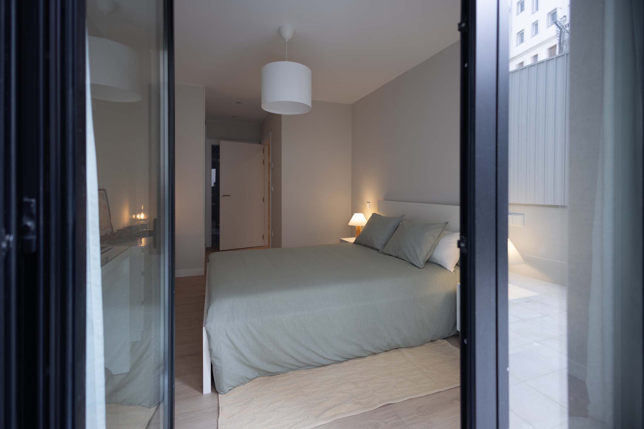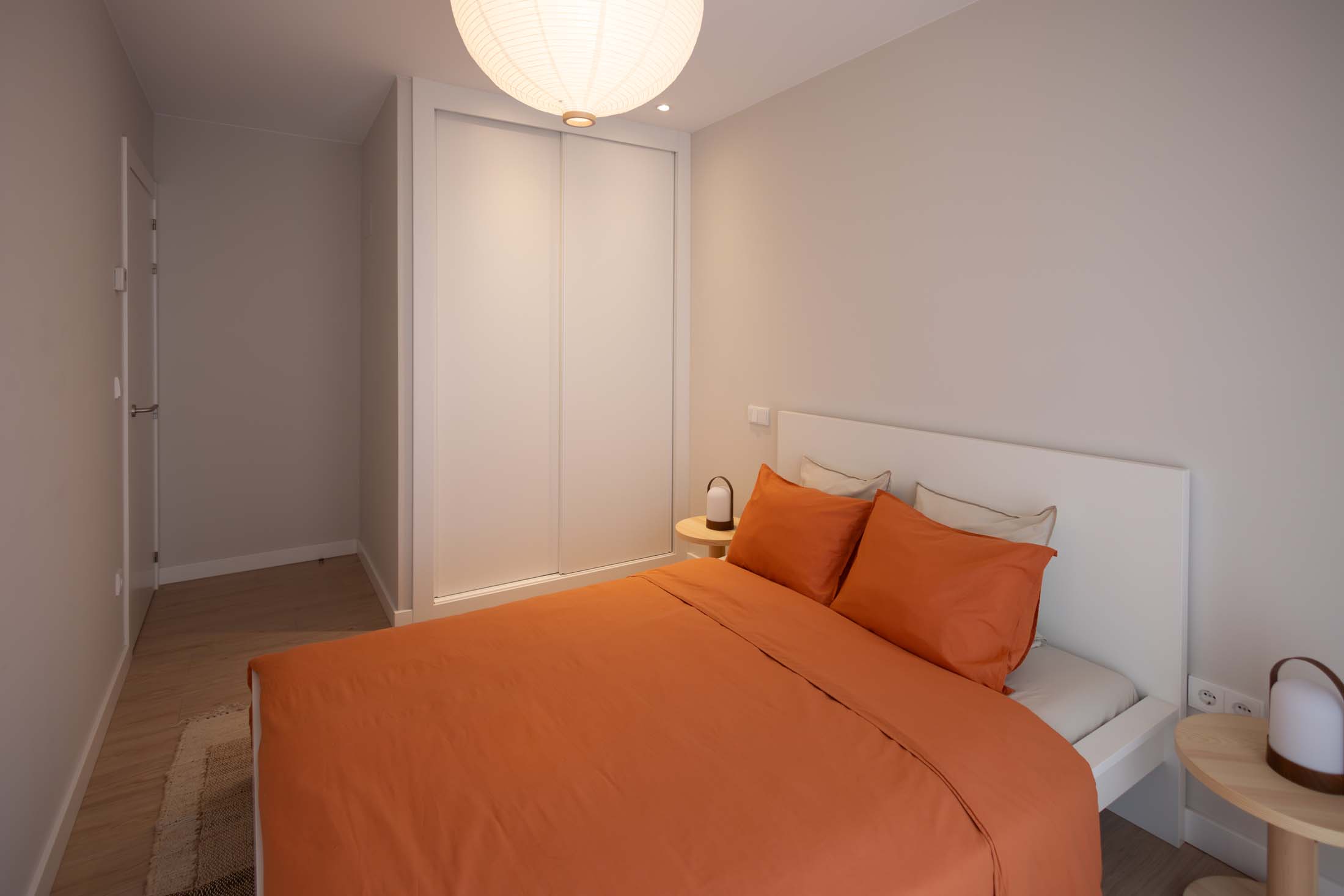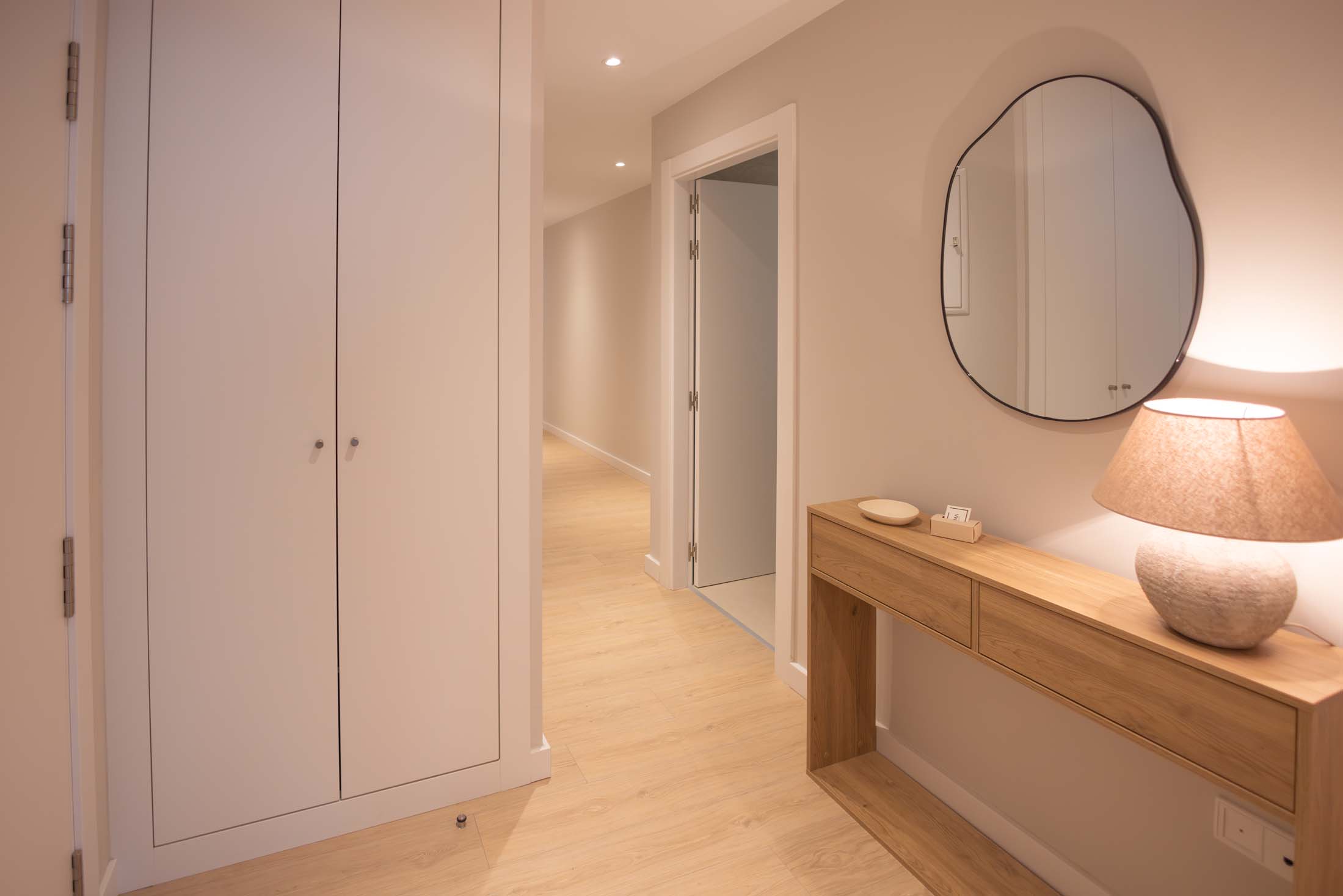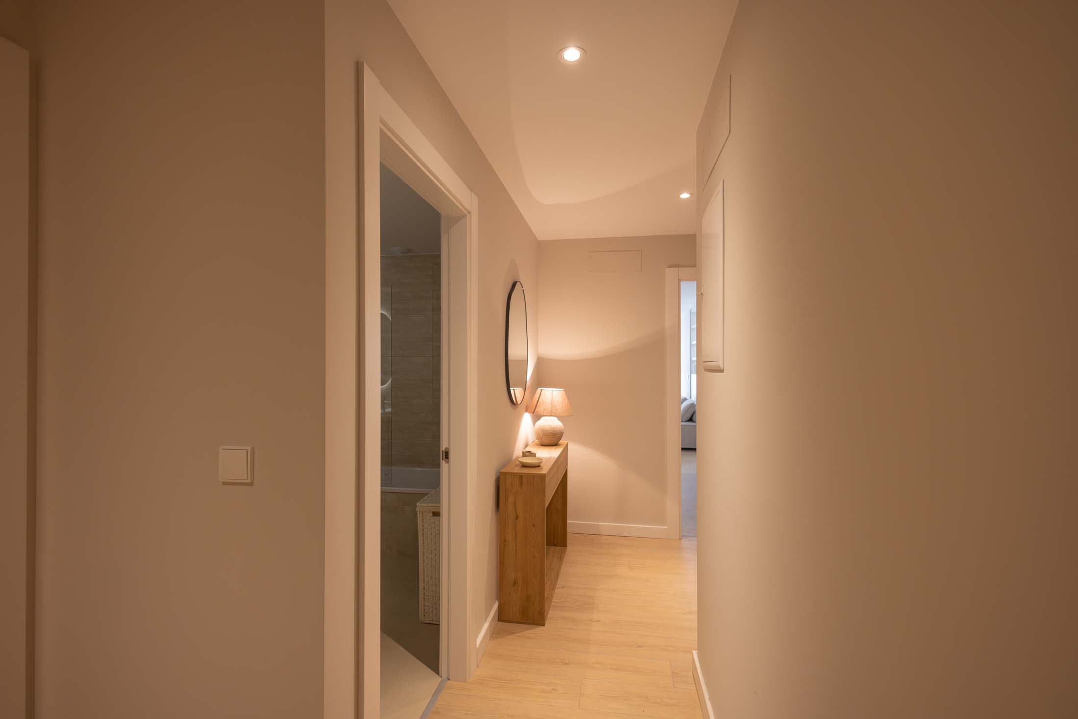 Las viviendas cuentan con: cocinas equipadas con electrodomésticos de la marca BOSCH, baños con mueble de lavabo y mamparas, armarios empotrados divididos interiormente en dormitorios y entrada de la vivienda, carpintería interior en color blanco, pavimentos de gres en baños, lavandería y cocina y suelo laminado en salón–comedor y dormitorios. La instalación de producción de agua caliente y calefacción será del tipo individual a base de caldera de gas natural estancas y de condensación. El edificio contará con una instalación de aerotermia, para la contribución solar a la producción de agua caliente sanitaria en las viviendas. Las viviendas disponen de un sistema de calefacción por suelo radiante.