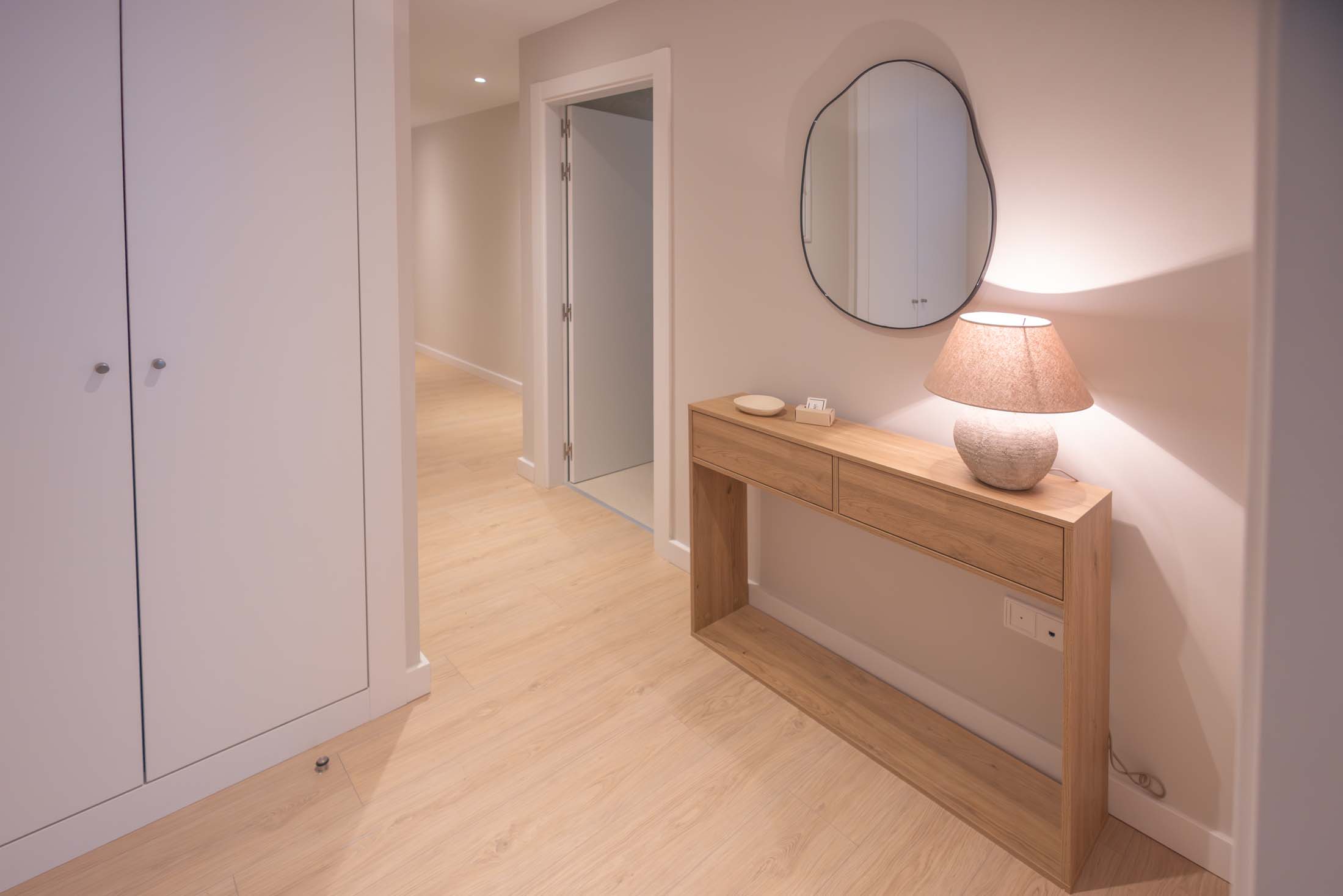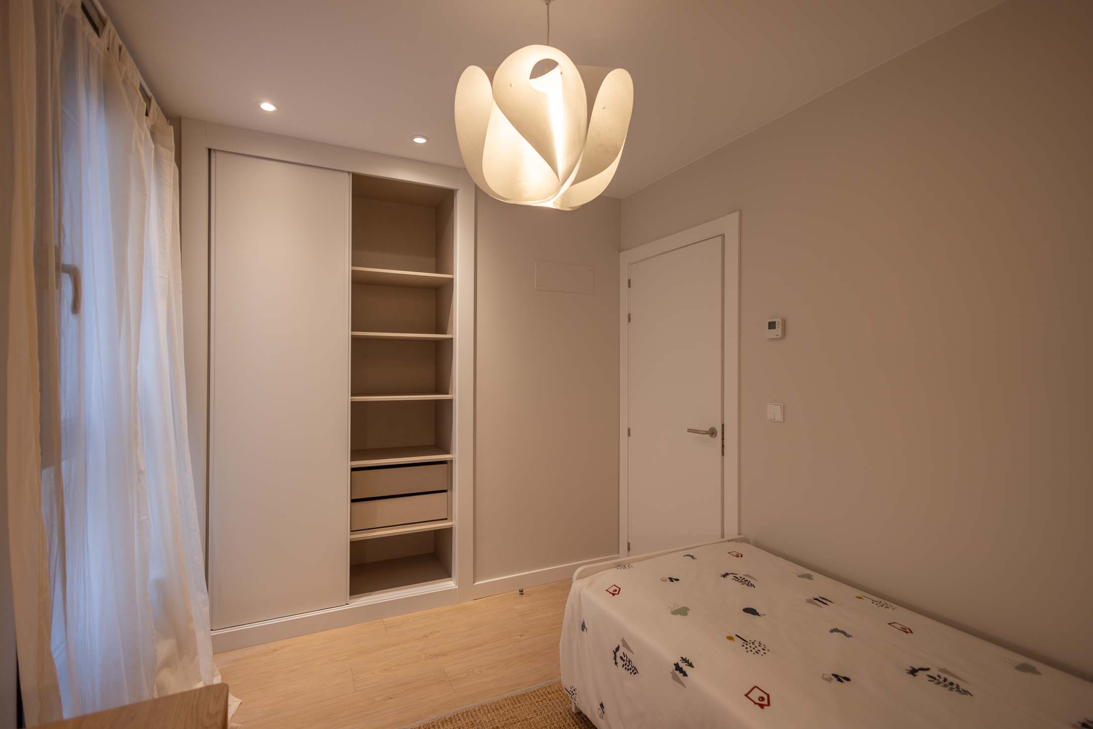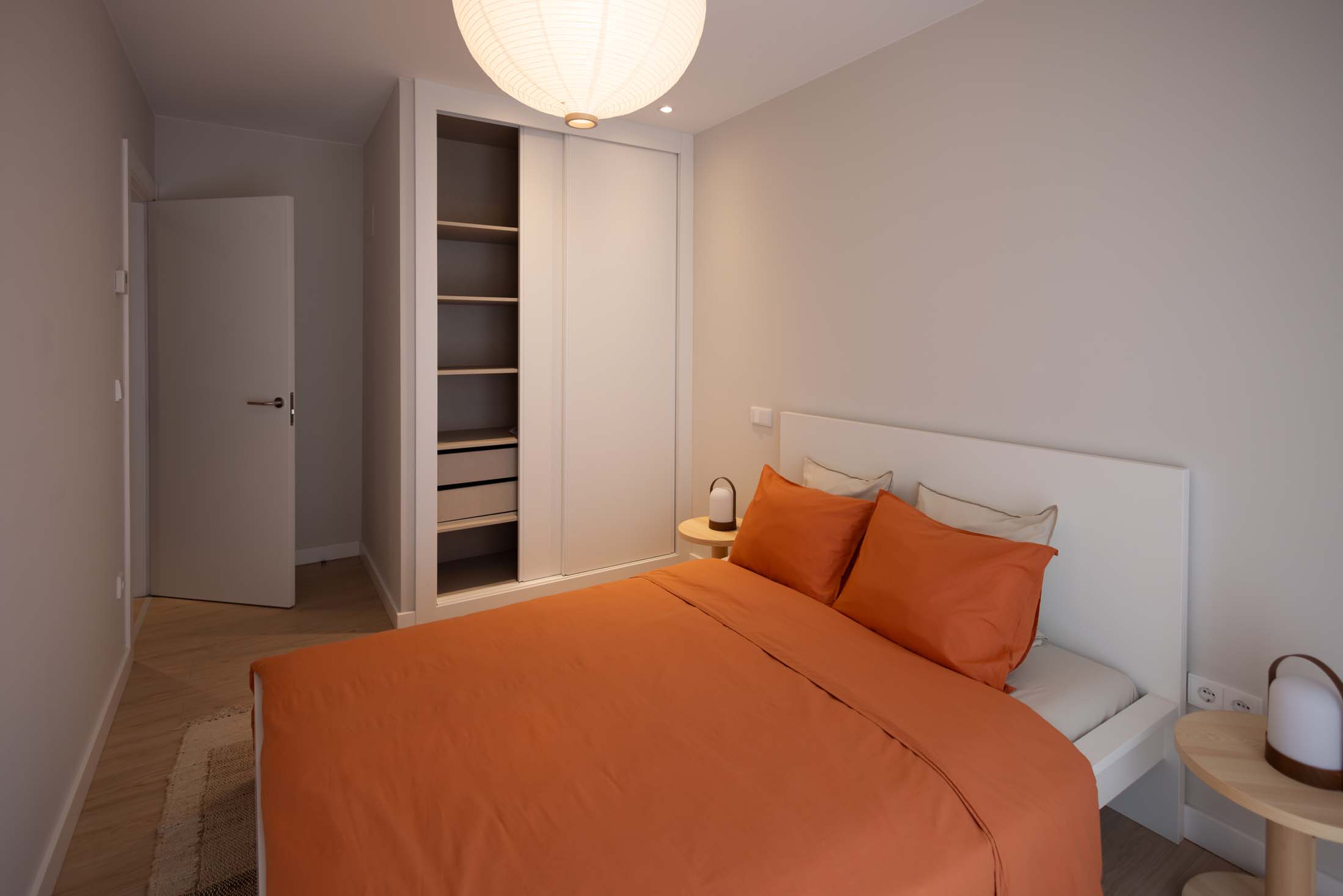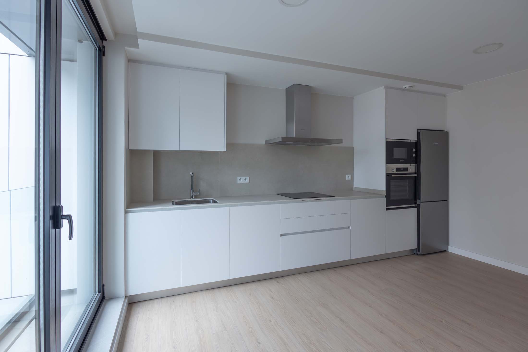 Las viviendas cuentan con: cocinas equipadas con electrodomésticos de la marca BOSCH, baños con mueble de lavabo y mamparas, armarios empotrados divididos interiormente en dormitorios y entrada de la vivienda, carpintería interior en color blanco, pavimentos de gres en baños, lavandería y cocina y suelo laminado en salón–comedor y dormitorios. La instalación de producción de agua caliente y calefacción será del tipo individual a base de caldera de gas natural estancas y de condensación. El edificio contará con una instalación de aerotermia, para la contribución solar a la producción de agua caliente sanitaria en las viviendas. Las viviendas disponen de un sistema de calefacción por suelo radiante.