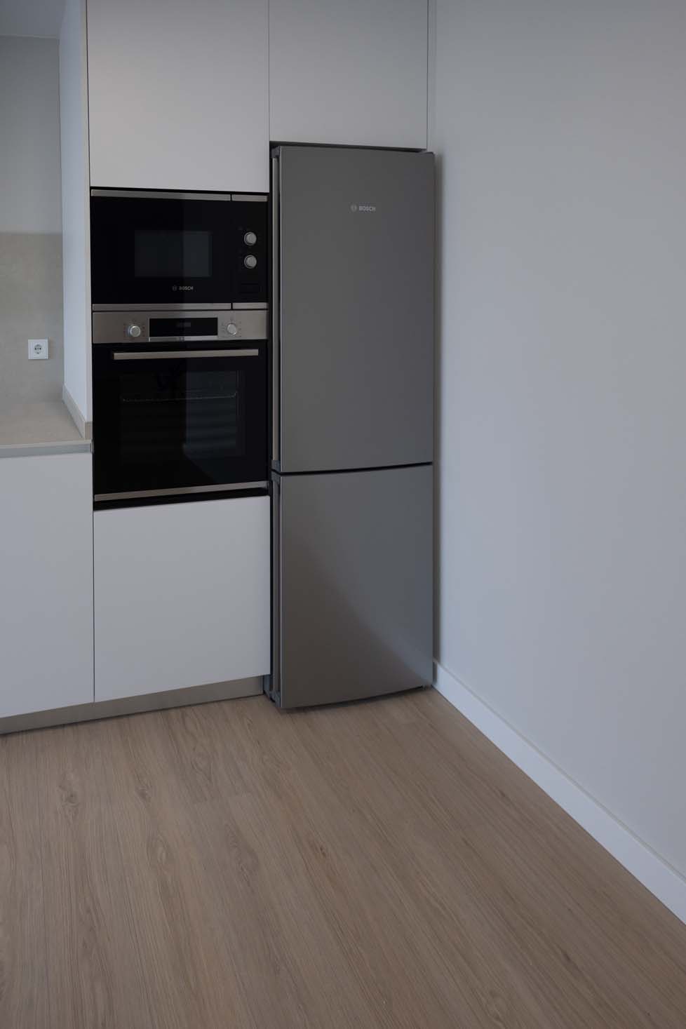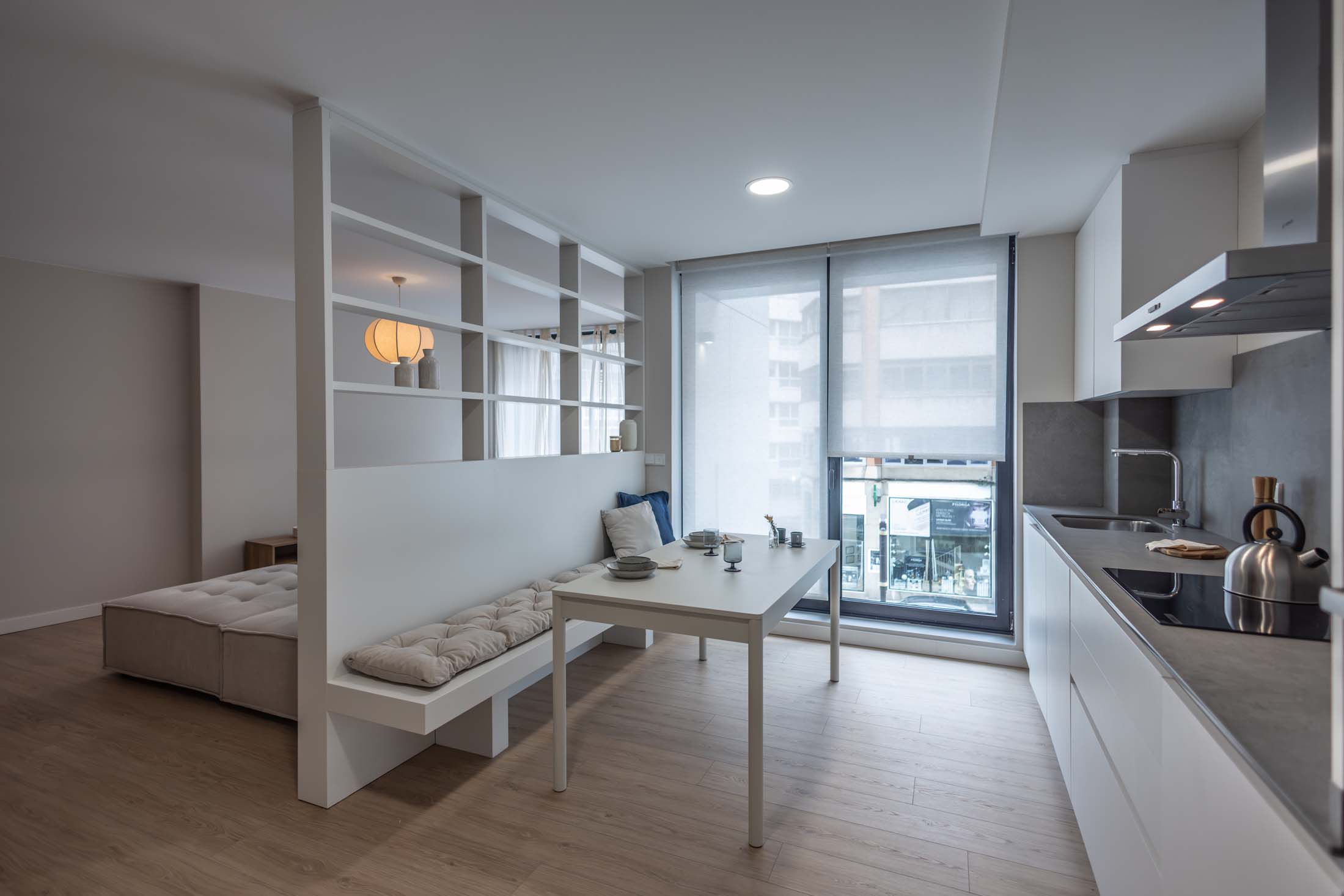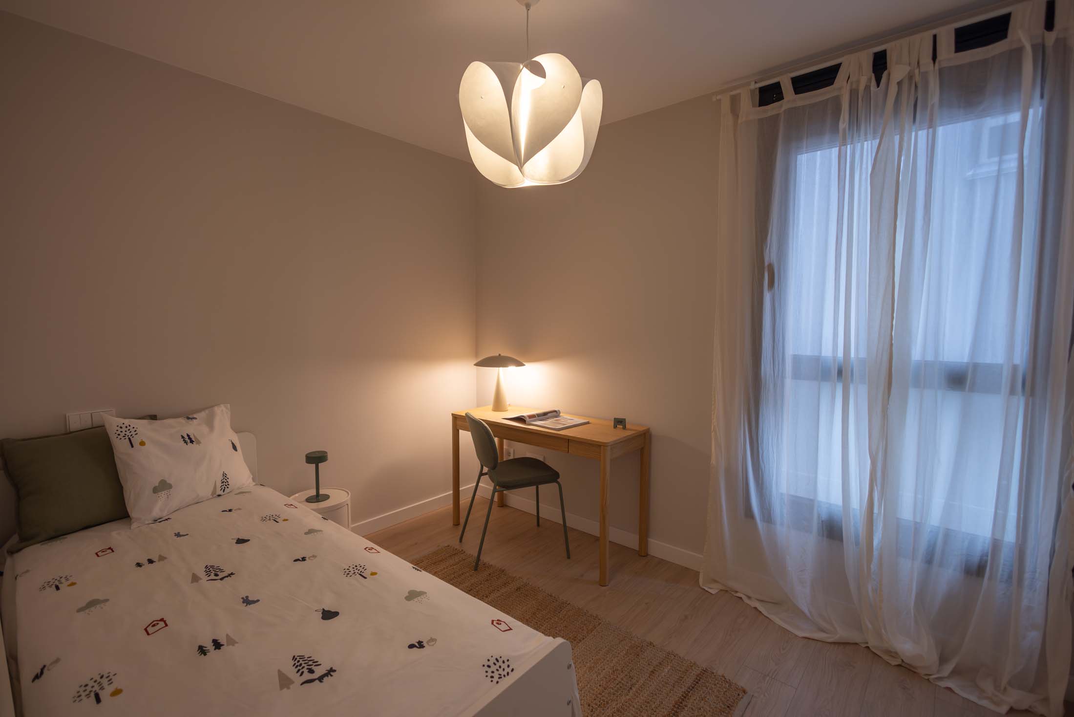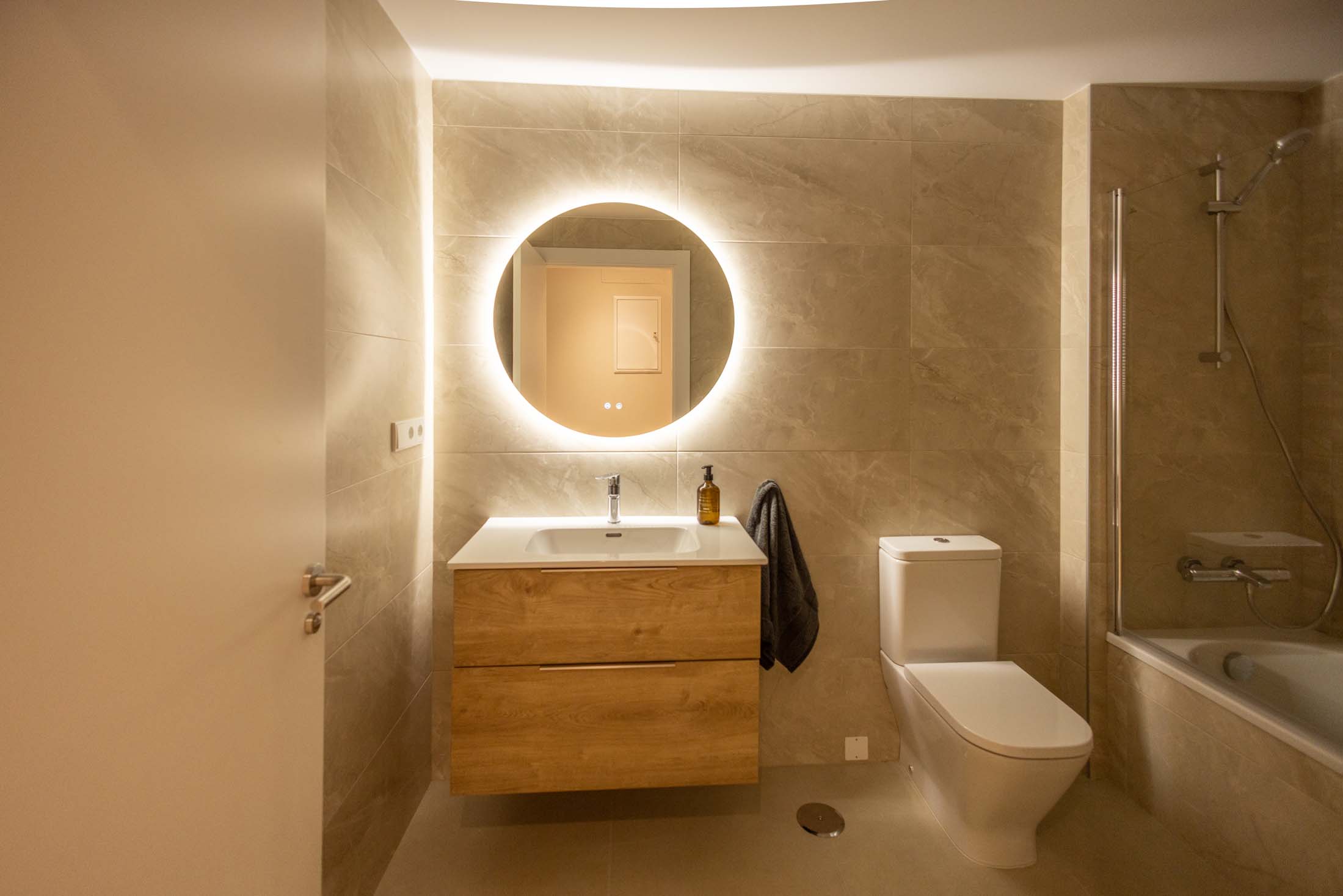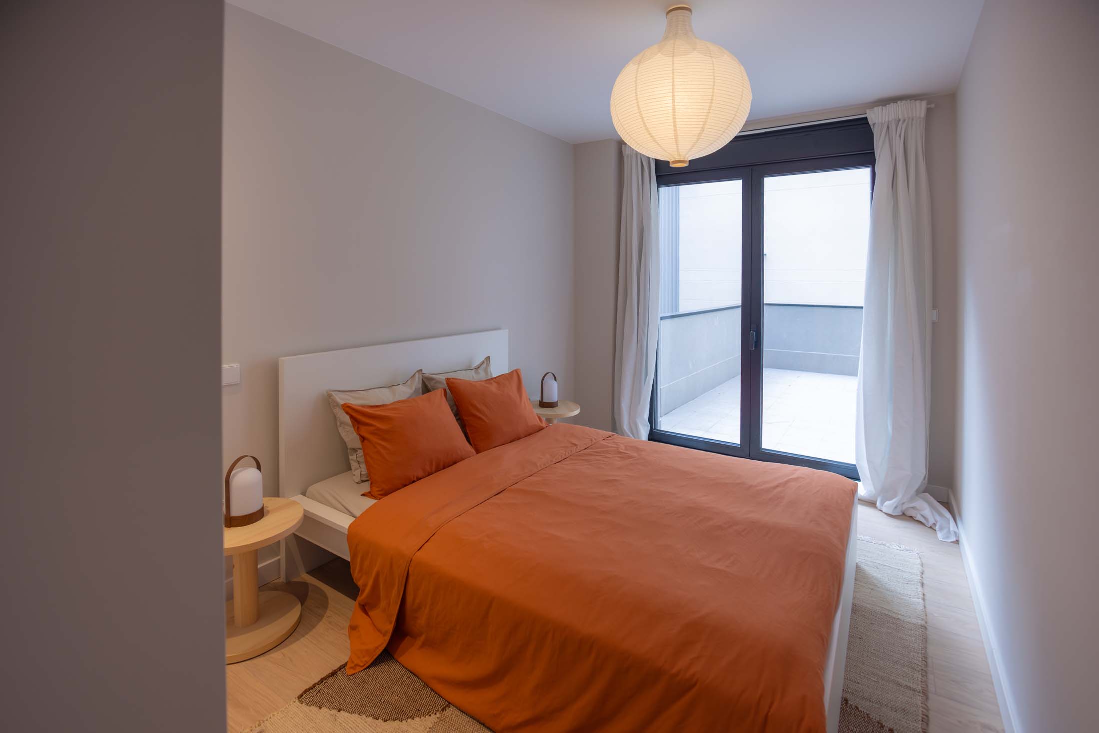 Las viviendas cuentan con: cocinas equipadas con electrodomésticos de la marca BOSCH, baños con mueble de lavabo y mamparas, armarios empotrados divididos interiormente en dormitorios y entrada de la vivienda, carpintería interior en color blanco, pavimentos de gres en baños, lavandería y cocina y suelo laminado en salón–comedor y dormitorios. La instalación de producción de agua caliente y calefacción será del tipo individual a base de caldera de gas natural estancas y de condensación. El edificio contará con una instalación de aerotermia, para la contribución solar a la producción de agua caliente sanitaria en las viviendas. Las viviendas disponen de un sistema de calefacción por suelo radiante.